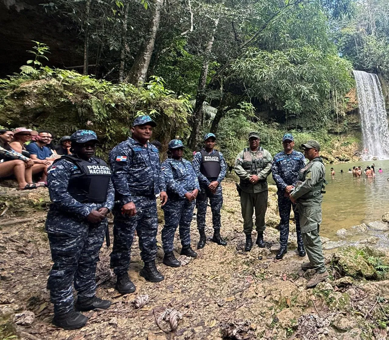 Asimismo, en Santo Domingo Norte y Monte Plata, una fuerza de tarea conjunta integrada por la Policía Nacional, las Fuerzas Armadas y organismos de socorro fue desplegada en ríos, balnearios y vías de acceso, incluyendo puntos como el río Comate, río Payano, río Yabacao, entre otros, así como en zonas de Villa Mella.