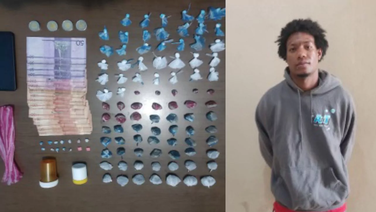 Al ser detenido se le ocupó la cantidad 100 porciones de diferentes tipos de sustancias ilícitas, envueltas en fundas plásticas se ocuparon (36) porciones de un polvo blanco que se presume es cocaína, (54) porciones de un vegetal verde que se presume es marihuana, (10) porciones de un material rocoso que se presume es crack, (4) pastillas de diferentes colores, que presumimos es estasis, un celular y la suma de RD$:1,870.00 pesos dominicanos.