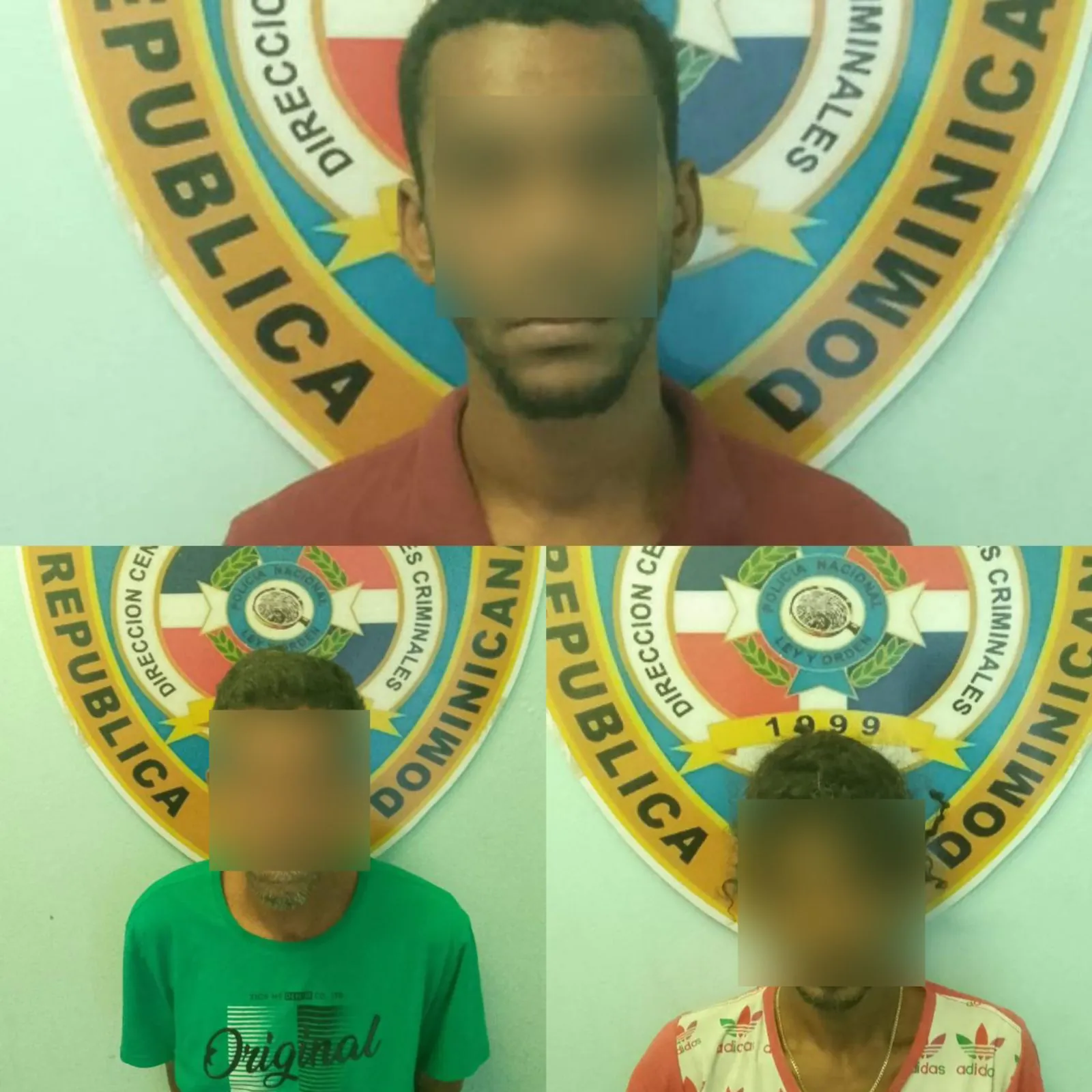 Emilio Aracena, Manuel Abreu y Miguel Fernández fueron arrestados por robar herramientas de una gomera en La Vega.