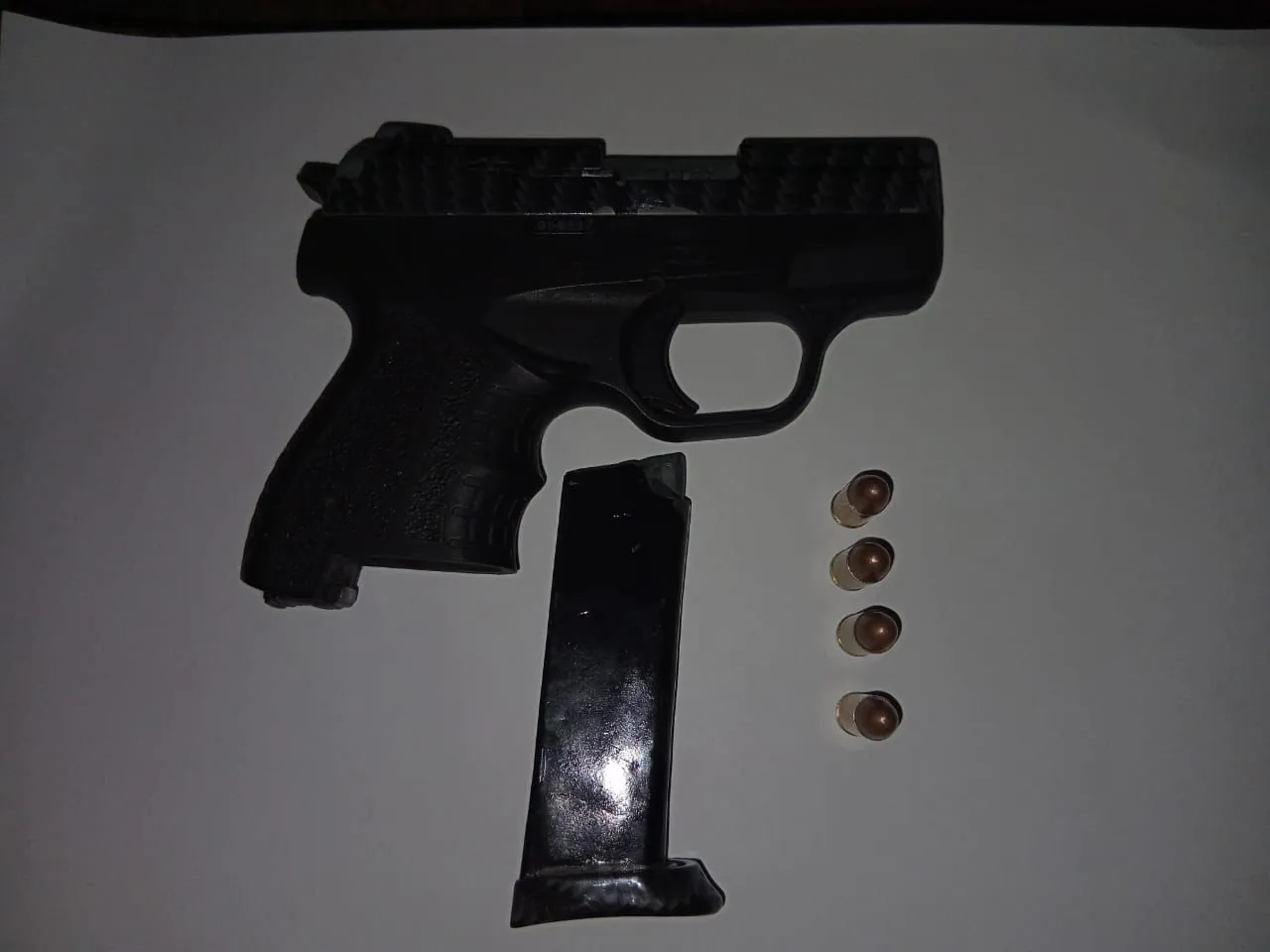 Se trata de Yencin Len, de 23 años de edad, a quien, al momento de ser requisado, se le encontró un arma de fuego tipo pistola, marca MARKSMAN, serie 994149, sin ningún tipo de documentación.