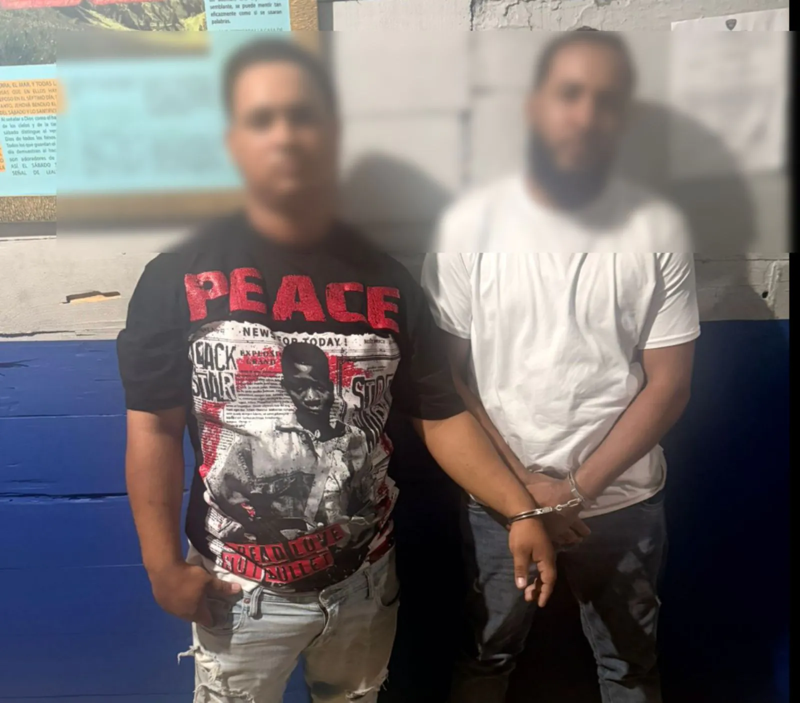 Miembros de la Policía Preventiva arrestaron en flagrante delito a dos hombres durante un operativo preventivo realizado en el sector Barrero, detrás del play del municipio de Navarrete, la madrugada de este sábado 7 de marzo de 2026.