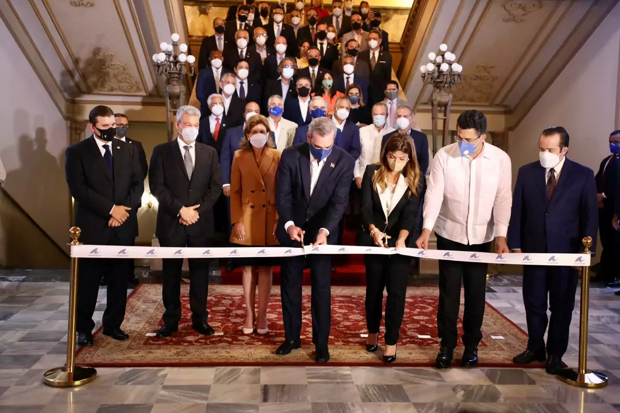 Acompañaron al presidente, la vicepresidenta Raquel Peña; el ministro de la Presidencia, Lisandro Macarrulla; el ministro Administrativo, José Ignacio Paliza; el ministro de Turismo, David Collado; el ministro de Trabajo, Luis Miguel de Camps.