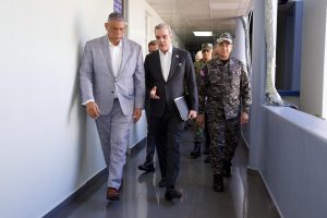 Acompañan al presidente Abinader los ministros de la Presidencia, Joel Santos Echavarría; de Interior y Policía, Jesús Vásquez Martínez; el vicealmirante Ramón Guzmán Betances Hernández, en representación del ministro de Defensa teniente general Carlos Luciano Díaz Morfa; el director general de la Policía Nacional, mayor general Eduardo Alberto Then; los comandantes generales del Ejército de República Dominicana, mayor general Carlos Antonio Fernández Onofre; de la Armada de República Dominicana, vicealmirante, Agustín Alberto Morillo Rodríguez; el presidente de la Dirección Nacional de Control de Drogas (DNCD), vicealmirante José Manuel Cabrera Ulloa.
