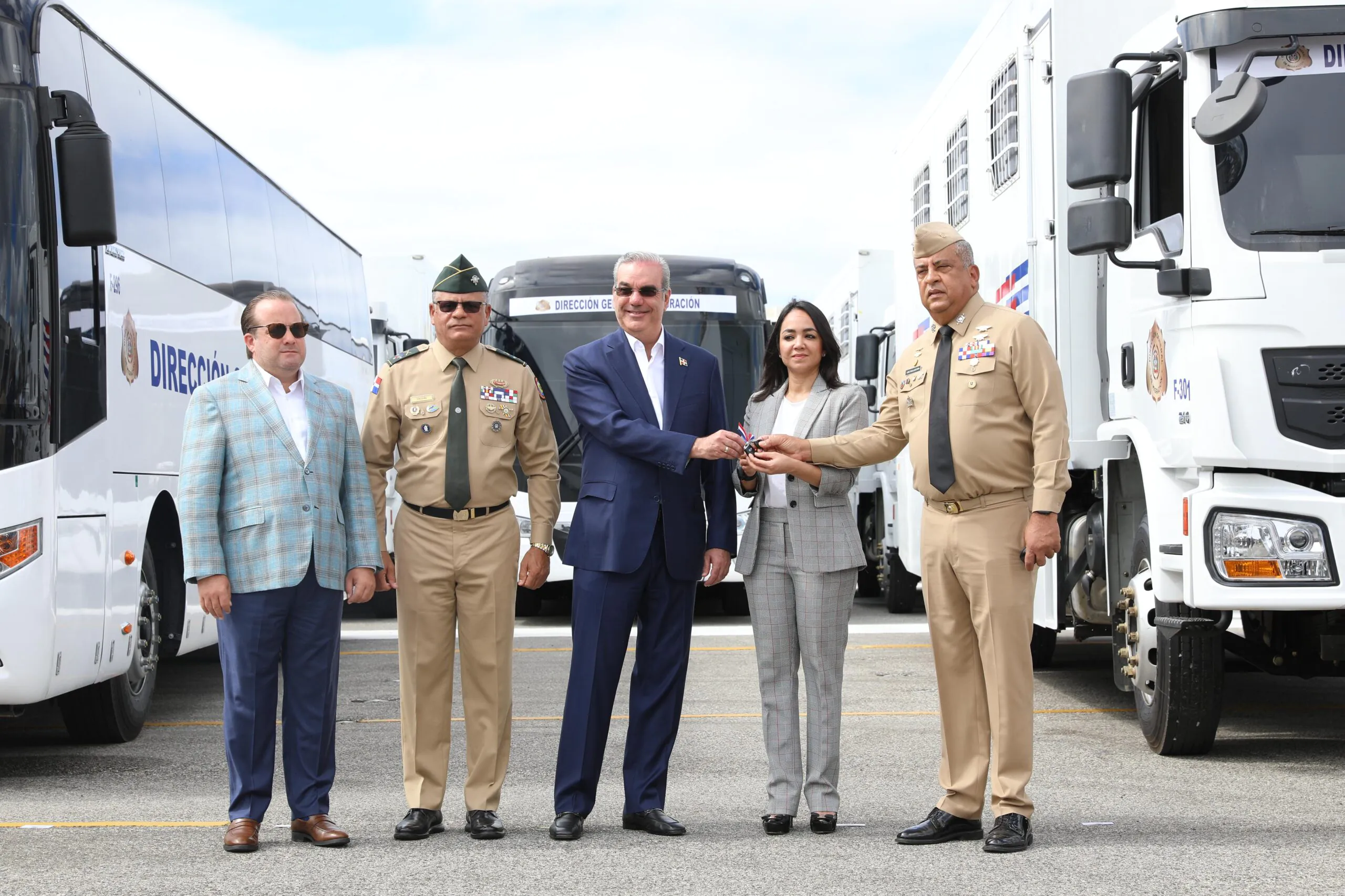 El presidente Luis Abinader entregó este lunes 58 vehículos para seguir fortaleciendo los operativos de detención y deportación de extranjeros en situación irregular, que lleva a cabo la Dirección General de Migración (DGM) en el país.