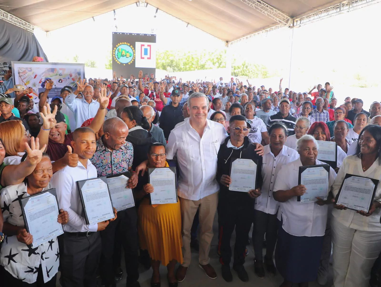 El presidente Luis Abinader entregó la mañana de este martes 923 certificados de títulos de propiedad, los cuales beneficiarán a propietarias de parcelas, solares y viviendas en las comunidades de Santana, Valla Honda, Los Conuquitos, Valle Encantando y Las Enfermeras.