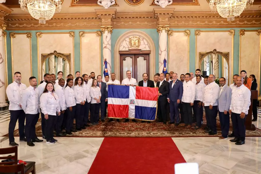 El presidente Luis Abinader entregó este martes la bandera nacional a la delegación dominicana que participarán en los XXlV juegos Centroamericanos y del Caribe, San Salvador 2023, a celebrarse del 23 de junio al 8 de julio en San Salvador y que tendrá como subsede a República Dominicana.
