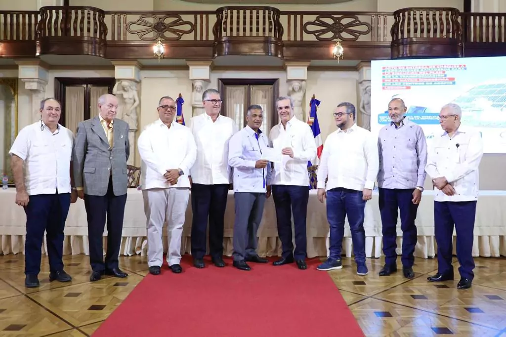 El Presidente Luis Abinader encabezó este lunes el acto de entrega de cheques a 13 asociaciones de ganaderos y cooperativas de productores agropecuarios por un monto de RD$13, 939,541.36 para la ejecución del Plan de la Transformación de la Matriz Energética de los centros de acopio lechero.