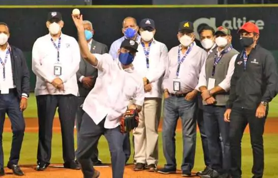 El presidente de la República, Luis Abinader, lanzó de este domingo la primera bola del partido inaugural entre los Tigres del Licey y los Leones del Escogido, en el Estadio Quisqueya, Distrito Nacional.