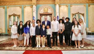 El presidente Luis Abinader recibió la mañana de este jueves a un grupo de 17 estudiantes meritorios hijos de dominicanos residentes en el exterior.