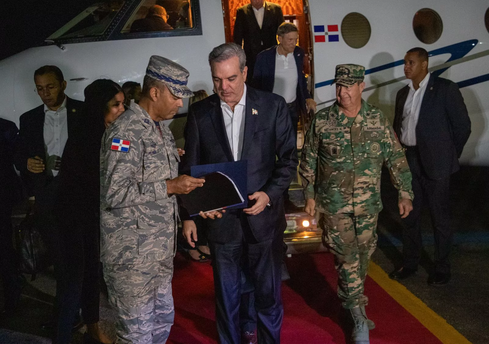 El mandatario arribó a suelo dominicano por la Base Aérea de San Isidro a las 10:00 de la noche, siendo recibido por el el comandante general de la Fuerza Aérea, mayor general técnico de Aviación Carlos Febrillet Rodríguez y el comandante de la Guardia Presidencial, general de brigada Guillermo Caro Cruz.