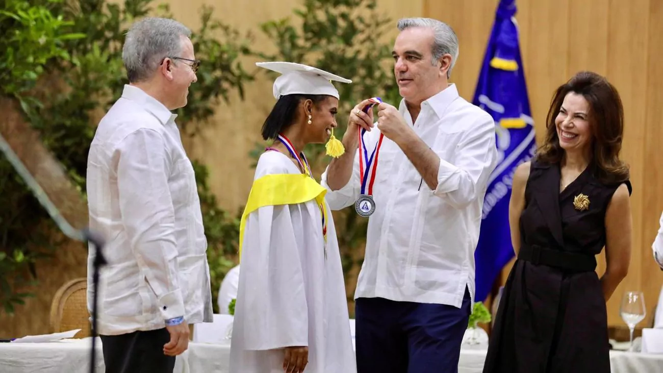 El presidente de la República Dominicana, Luis Abinader, presidió hoy la ceremonia de graduación de la séptima promoción del Liceo Hna. Josefina Serrano, en Ciudad Santa María, donde 70 estudiantes culminaron sus estudios en áreas técnicas como Contabilidad, Enfermería y Soporte de Redes.