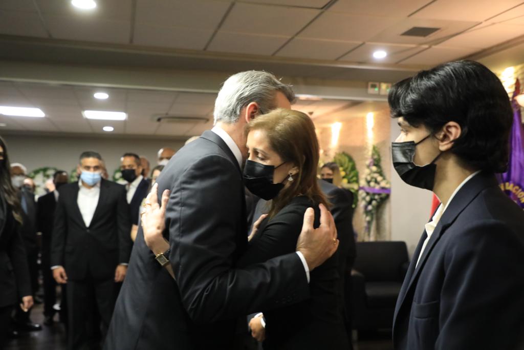 El presidente Luis Abinader acudió la noche de este sábado a la funeraria Blandino a expresar sus condolencias a familiares de Reinaldo Pared Pérez.