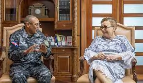 La procuradora general de la República, Miriam Germán Brito, recibió este jueves en su despacho la visita del nuevo director general de la Policía Nacional, mayor general Ramón Antonio Guzmán Peralta, durante la cual se comprometieron a seguir impulsando acciones para fortalecer la seguridad y brindar un mejor servicio a la ciudadanía.