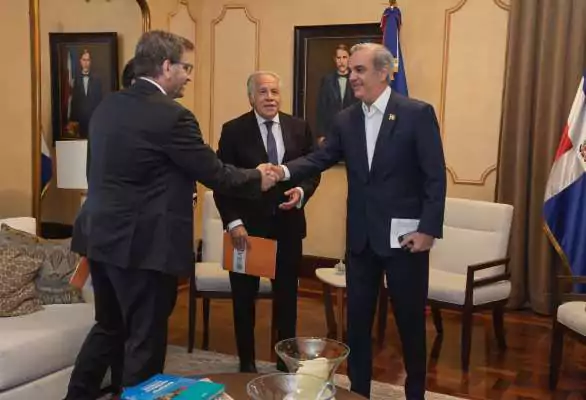 Almagro llegó al Palacio Nacional alrededor de las 3:30 de la tarde siendo recibido por el presidente Abinader en el salón privado de la Casa de Gobierno.