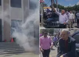 En ese sentido, las puertas de la entrada frontal del Palacio de Justicia fueron cerradas por las autoridades, y es cuando se produce el forcejeo con los militantes del PLD que intentaron entrar abruptamente.