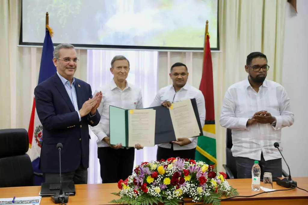 El acuerdo fue firmado por los cancilleres de República Dominicana, Roberto Álvarez y de la República Cooperativa de Guyana, Hugh Hilton Todd, también el ministro de Recursos Naturales de esa nación, Vickram Bharrat, en presencia de los presidentes de ambos países, Luis Abinader y Mohamed Irfaan Alí, respectivamente.