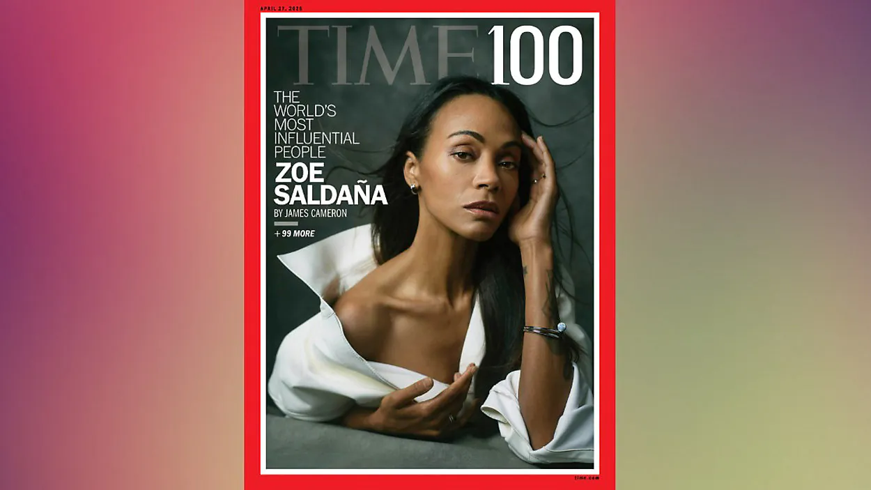 La actriz Zoe Saldaña, de origen dominicano y puertorriqueño, fue reconocida este miércoles por la revista Time como una de las 100 personas más influyentes de 2026 y figura entre las cuatro personalidades destacadas en su portada, en una edición que subraya su impacto en el cine global y su condición de la actriz más taquillera de la historia.