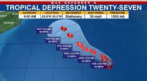 La depresión tropical 27 se formó sobre el Atlántico Central, según informó Centro Nacional de Huracanes (CNH).
