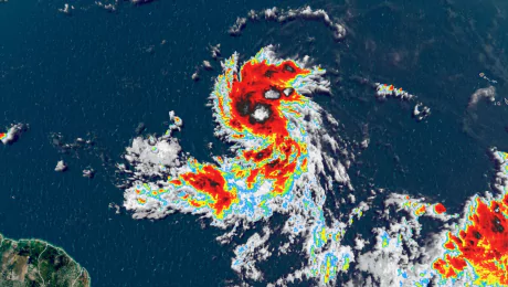 Hasta el momento, la tormenta tropical posee vientos de 45 millas por horas, moviéndose a 16 millas por horas hacia el oeste-noroeste.
