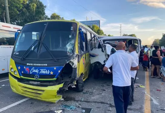 Entre los vehículos involucrados se encuentra un autobús de pasajeros de la empresa de transporte Caribe Tours, que, según informes preliminares, colisionó con varios automóviles particulares.