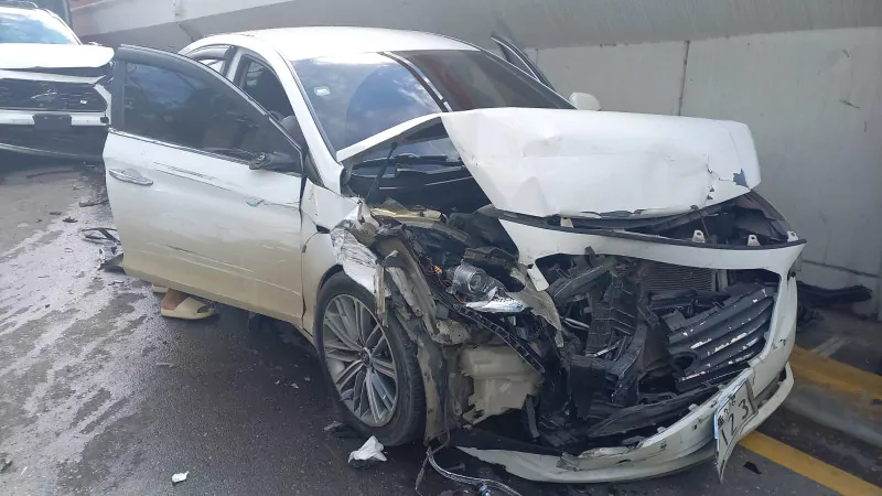 Se registró un accidente múltiple en la avenida Estrella Sadhalá, en Santiago de los Caballeros, en el que un autobús de transporte público impactó con otros seis vehículos tras presuntamente una falla mecánica de los frenos.