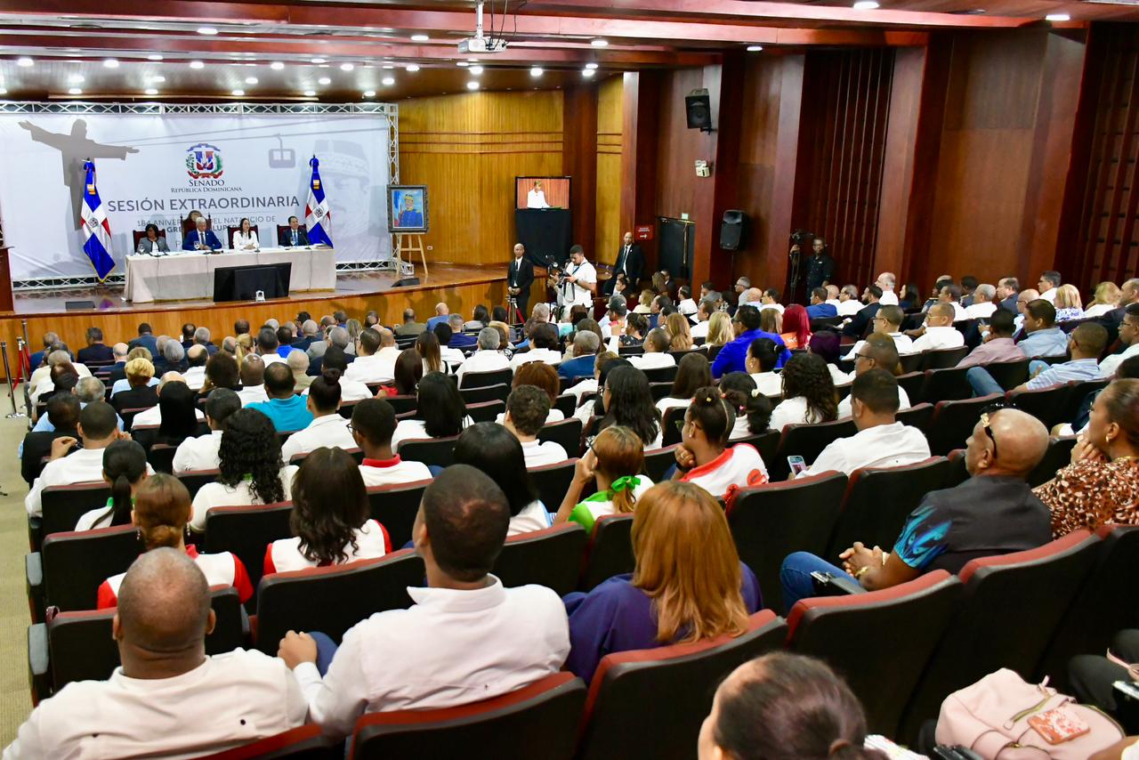 Durante una Sesión Extraordinaria realizada en el Auditorio de la Universidad Autónoma de Santo Domingo centro Puerto Plata, en honor al 184 aniversario del natalicio del prócer Gregorio Luperón, la Cámara Alta sancionó, además, en dos lecturas, el Proyecto de Ley que establece exenciones impositivas y arancelarias para los insumos y equipos médicos cardiovasculares, oftalmológicos y endocrinos, sometida por la representante de Puerto Plata, Ginnette Bournigal de Jiménez.
