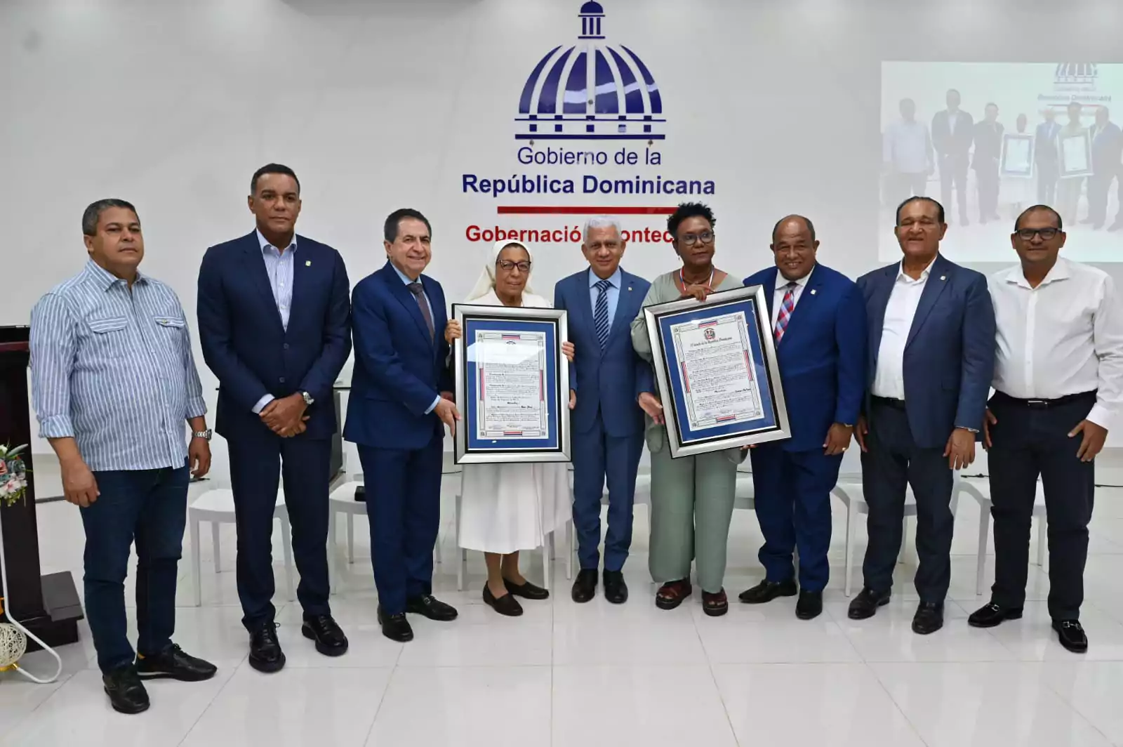 También la Gobernadora Nelsy Milagros Cruz Martínez; el Diputado Rosendy Polanco, la diputada electa Johanny Martínez; el comandante de la 4ta. Brigada del ERD, Paino Chocaban Perdomo; familiares y amigos de los reconocidos, entre otros.