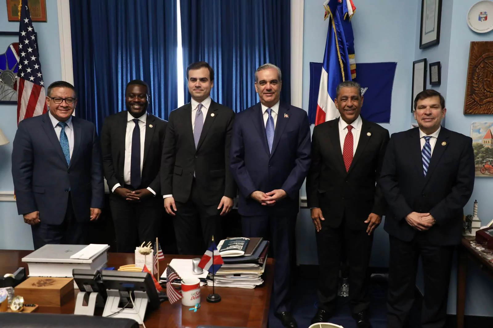 Después de su llegada a Washington D.C., capital de los Estados Unidos, el mandatario dominicano mantuvo una reunión con congresistas en la que discutieron la situación de crisis actual en Haití y el peligro que esto representa para la seguridad nacional en territorio dominicano.