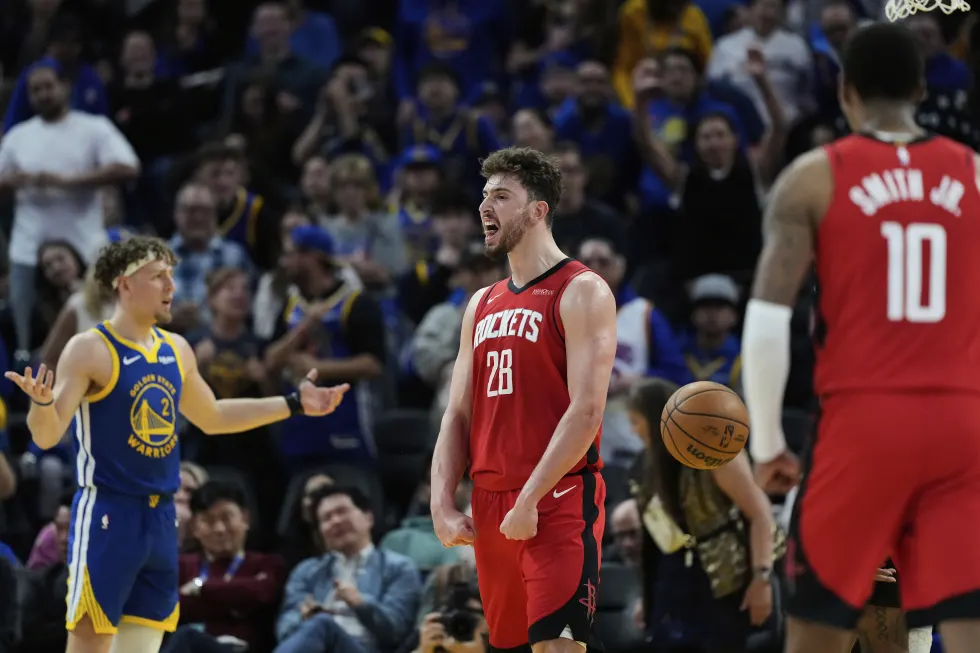 Alperen Sengun brilló con un dominante doble-doble de 19 puntos y 14 rebotes, y los Rockets de Houston frenaron la racha de cinco victorias consecutivas de los Warriors de Golden State con una sólida victoria de 106-96 este domingo por la noche en el Chase Center.