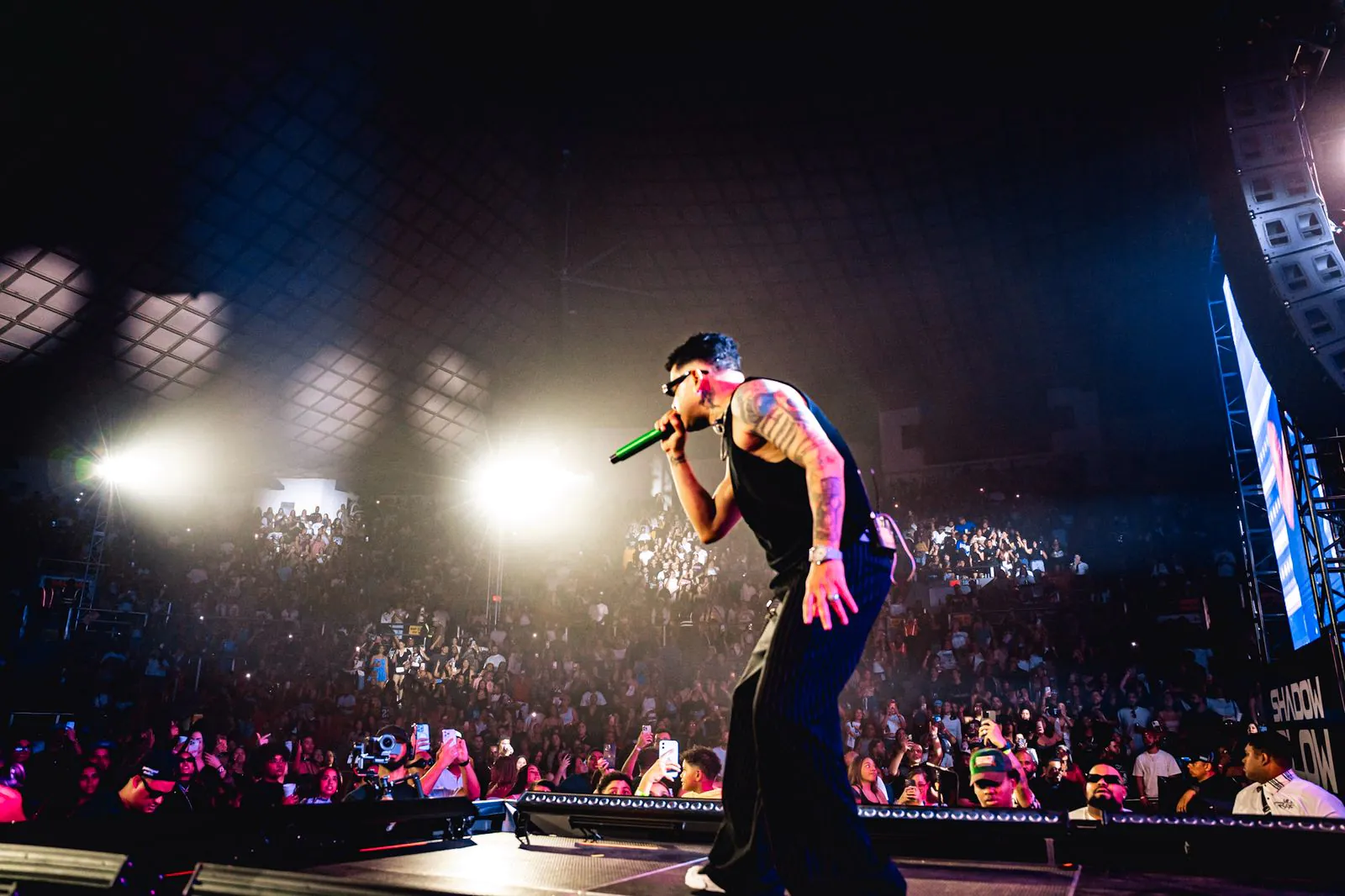 Esa energía fue creciendo cuando llegó el llamado al “teteo”, uno de los segmentos más explosivos del espectáculo. Temas como “Pomposo”, “Teteo”, “Kurru” y “Donde tú ta” hicieron vibrar la Arena hasta alcanzar uno de los picos de la noche con “Capea El Dough”, reafirmando la complicidad absoluta entre Shadow Blow y sus fanáticos.