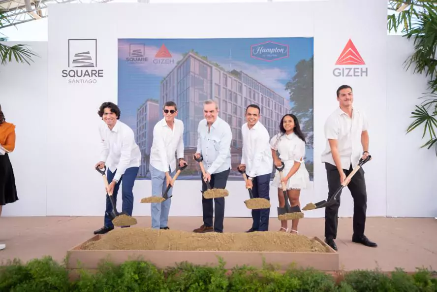 El presidente Luis Abinader Corona encabezó el primer palazo del proyecto de uso mixto SQUARE Santiago, el cual combina la operación del hotel Hampton By Hilton Santiago, área comercial con propuesta alternativa para larga estancia y plaza pública en la emblemática calle Del Sol de esta ciudad.