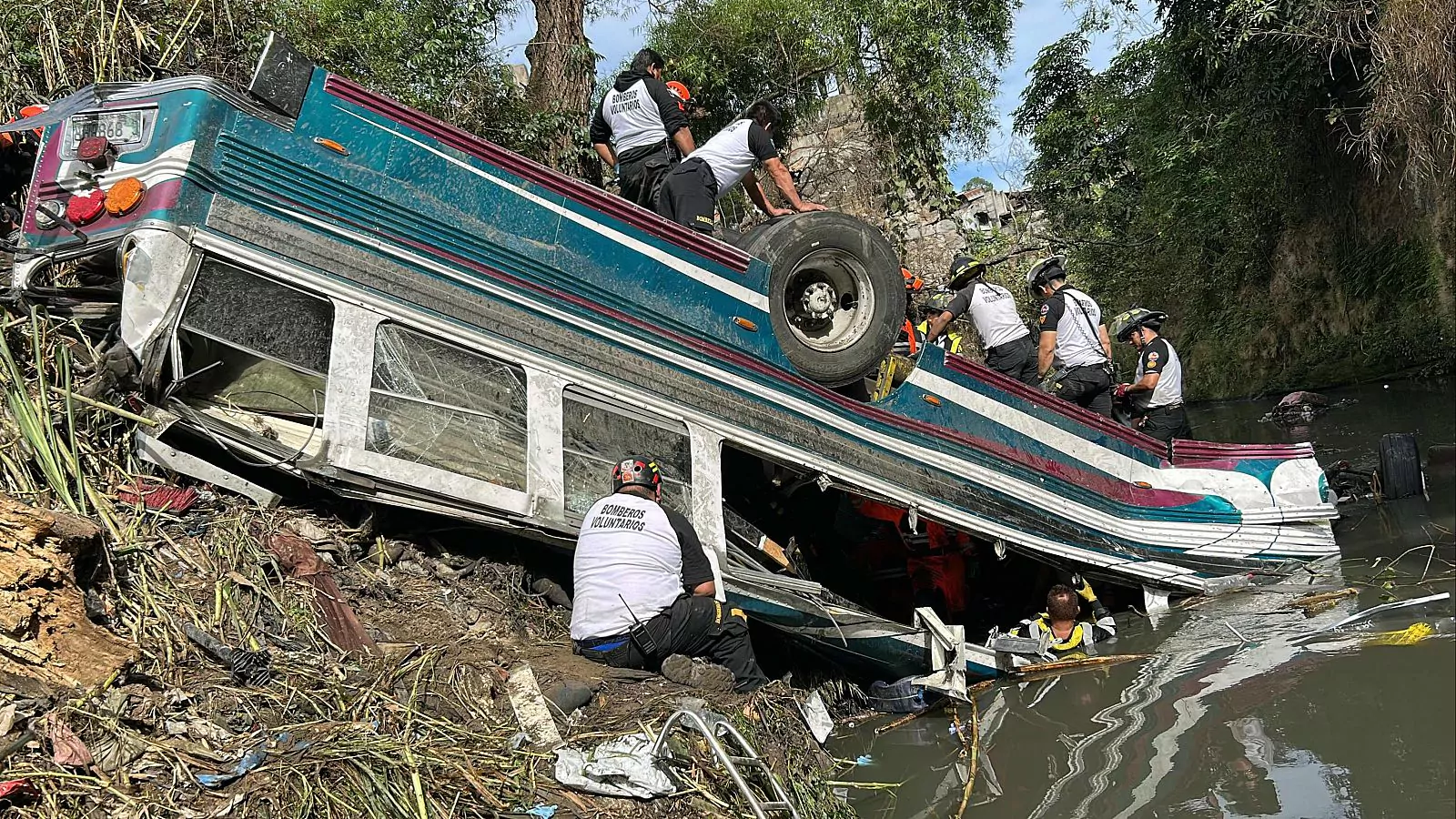 El bus extraurbano cayó la madrugada de este lunes por el puente de Belice, al norte de Ciudad de Guatemala, quedando parcialmente sumergido en un río. Las autoridades estiman que entre los 51 fallecidos hay menores de edad, pero aún no hay detalles al respecto.