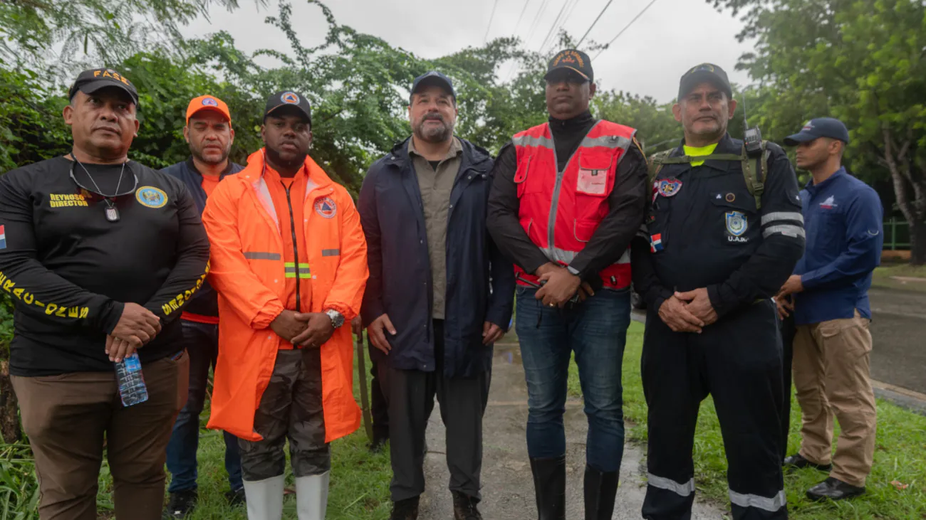 La visita, desarrollada en sectores del municipio de Santo Domingo Norte, forma parte de las acciones coordinadas por el gobierno del presidente Luis Abinader, con el propósito de reducir el impacto de las lluvias y brindar asistencia a las comunidades más afectadas.
