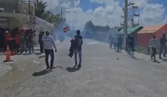 Desde la tarde de este domingo, las fuerzas de seguridad comenzaron a dispersar a los manifestantes con gases lacrimógenos en Friusa, donde se realiza una marcha organizada por la Antigua Orden Dominicana.