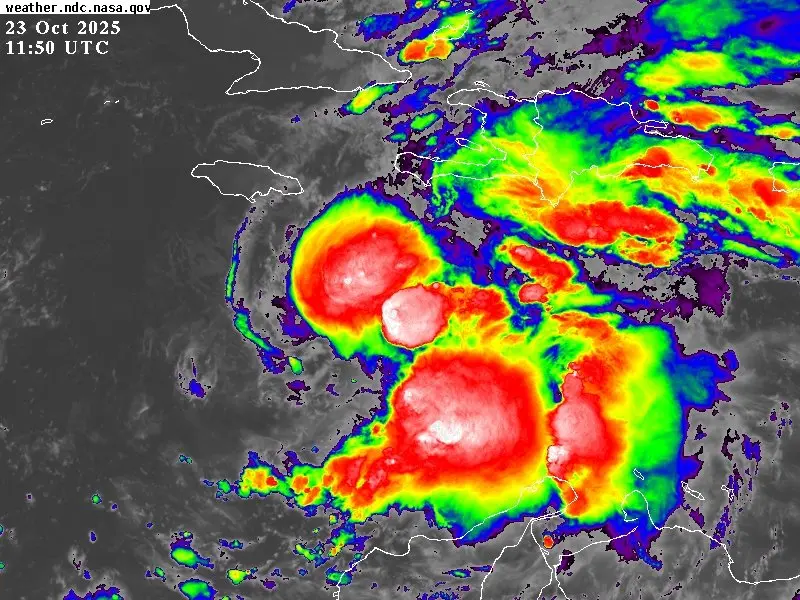 De acuerdo con el Centro Nacional de Huracanes de Estados Unidos (NHC), Melissa presenta un movimiento errático y descargará abundantes lluvias sobre Jamaica, el sur de Haití y parte de la República Dominicana durante el fin de semana.
