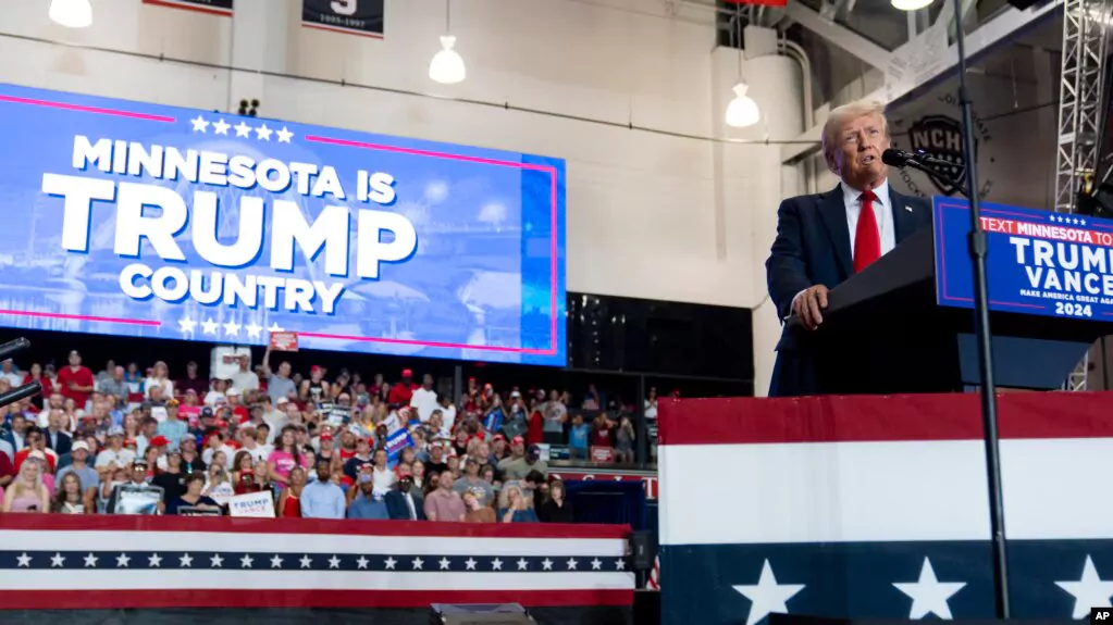 El mitin en St. Cloud, Minnesota, fue organizado como una señal del optimismo de la campaña sobre sus perspectivas en la zona centro-norte de Estados Unidos, especialmente cuando el presidente Joe Biden estaba mostrando signos de debilidad antes de su decisión de abandonar la campañaTrump, que ganó Michigan y Wisconsin en 2016 para perderlos cuatro años después, se ha centrado cada vez más en Minnesota como un estado donde le gustaría poner a los demócratas a la defensiva.