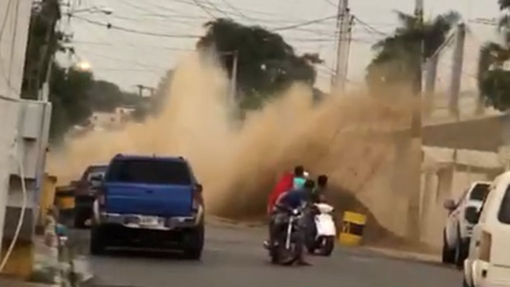 La enorme explosión ocurrió en la calle Fernando Bermúdez, debido a la falló de la conexión de una junta del tubo mayor. ante la situación los vecinos reaccionaron, mientras los encargados de trabajos garantizaron que solucionaran la problemática para restablecer el servicio del siniestro de agua potable.
