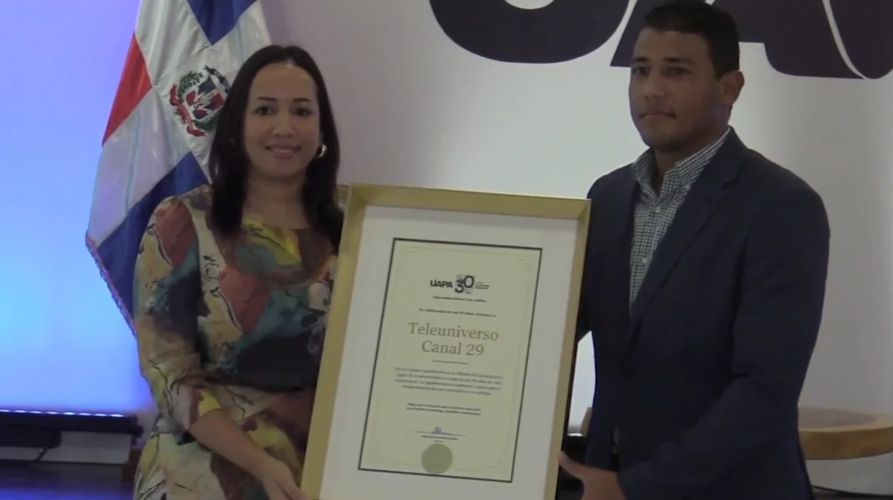 La planta televisiva Teleuniverso, Canal 29, fue reconocida por la Universidad Abierta para Adultos (UAPA) por su constante respaldo a esta casa de estudios durante sus 30 años de trayectoria institucional.