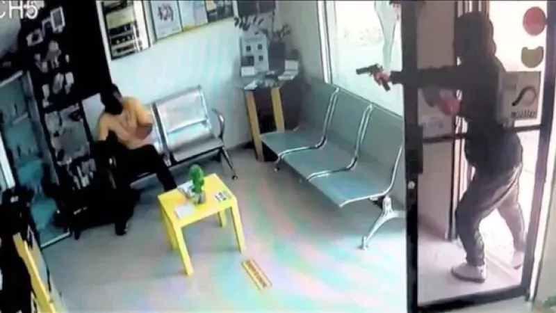 Mientras que, un video de una cámara de seguridad captó el momento en que los dos hombres vestidos con ropa negra llegan al lugar a bordo de una motocicleta e ingresan al local con pistola en mano, apuntando a los presentes.