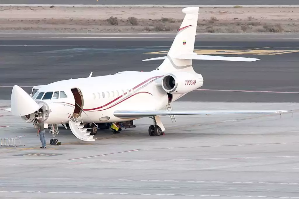 El avión, un Falcon 200 EX con matrícula YV 3360, es la segunda aeronave vinculada al gobierno de Maduro que está en el país y sobre ella pesa una sanción de la Oficina de Control de Bienes Extranjeros (OFAC). Así como la anterior, que fue incautada por las autoridades de Estados Unidos, vino al país desde hace meses con fines de recibir mantenimiento según Diario Libre.
