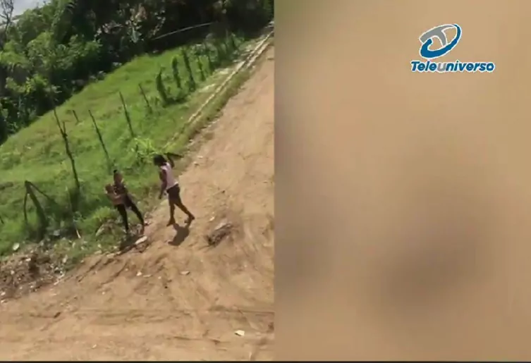 Una mujer agredió a machetazos a una adolescente mientras ésta cargaba un bebé, en un hecho ocurrido ayer en el sector Mamá Tingó de San Francisco de Macorís. el incidente quedó grabado por un aficionado, cuyas imágenes muestran a un hombre portando un machete también e induciendo a la agresora.