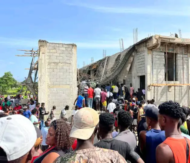 La estructura se cayó cuando los constructores haitianos trabajaban en el vaciado del plato.