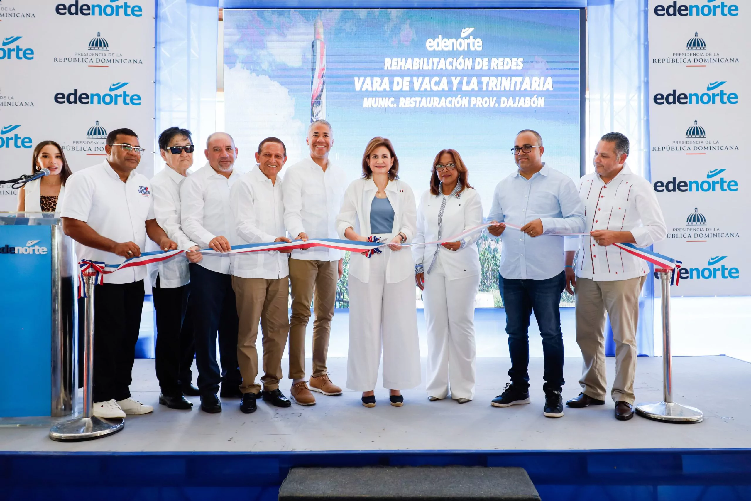 La vicepresidenta Raquel Peña encabezó el sábado el acto de inauguración de los proyectos de rehabilitación de redes e iluminación en dos comunidades de aquí, ejecutados por Edenorte Dominicana, con una inversión de RD$ 36.82 millones.