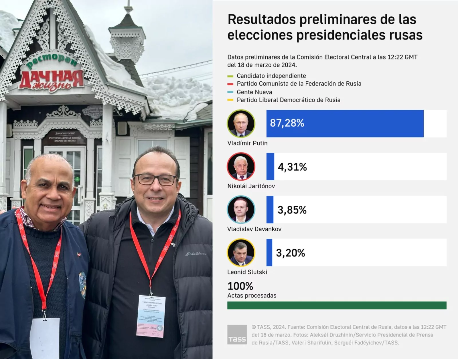 El Sr. Ramón A. Hernández Dominguez indicó que participó en Rusia de la observación electoral como parte oficial de la Misión del Consejo de Expertos Electorales de Latinoamérica -CEELA-, por invitación cursada por el Comité Central Electoral de la Federación Rusa, organizadora oficial de estas pasadas elecciones presidenciales, que se desarrolló durante tres días consecutivos, desde el viernes 15, sábado 16 y domingo 17 de los corrientes.